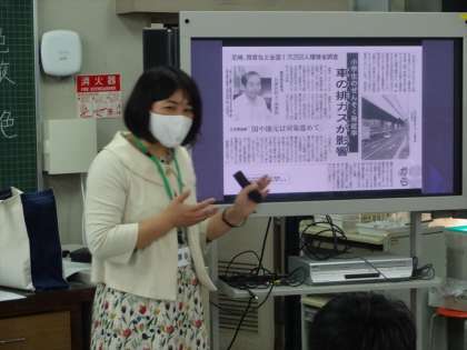 「大阪の大気汚染の現状と課題」と測定結果の課題を踏まえた解説を聞きました。「大気が汚いというのはどういうこと?」みなさんは意識していますか?NO2、PM2.5、光オキシダント等、みんなでかんがえよう!