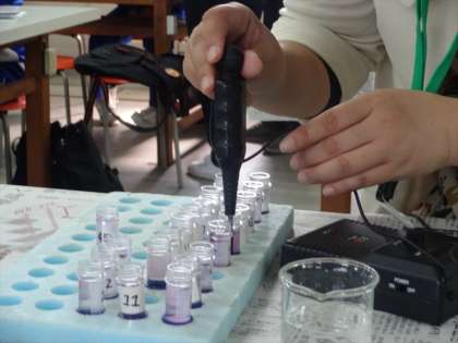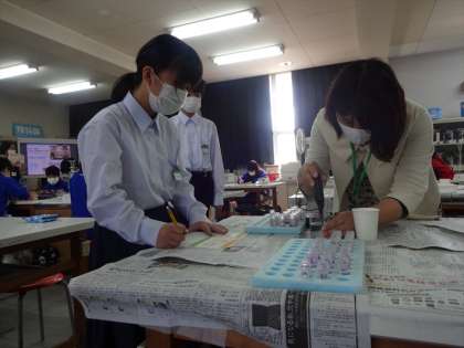 各自、測定器で濃度を測定し、結果をシートに記入。