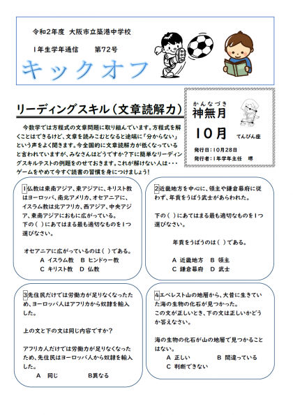 1年生 学年通信 72号