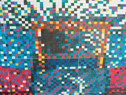 近くで見ると色のかけらに見えますが、遠くから見るとアート作品になります。