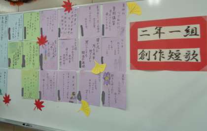 国語科の2年生の展示作品 創作短歌