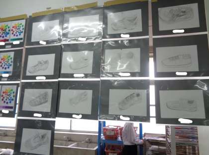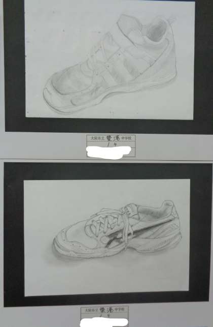 靴のデッサンを展示しています。自分の体を支えている感謝の気持ちを込めて書きました。