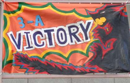 体育大会応援旗で最優秀賞を受賞した3年A組の旗です。