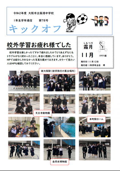 1年生 学年通信 78号