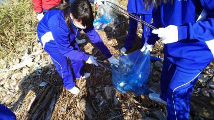 いったいどれくらいのごみがあるのか?だいたいのごみの量を調べるために、2メートル四方の中のごみの量と種類を調査しました。なんと25分でごみ袋3つ分ありました!驚きです。