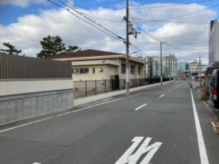 上 プール付近の道路より、格技室方面を見たところ