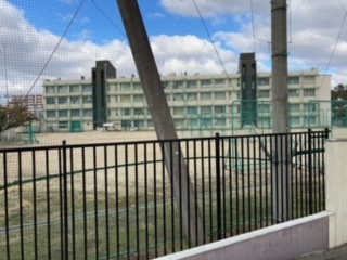 中 砂場付近外の歩道より校舎を見たところ