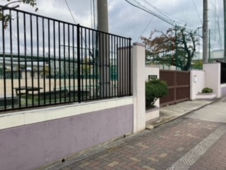下 築港中学校バス停より通用門を見たところ