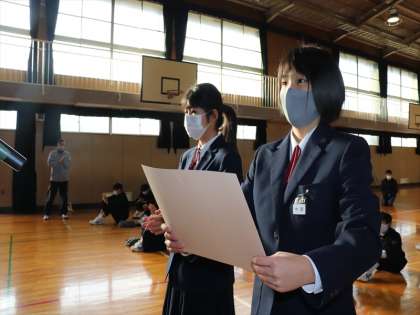 全校集会で「税についての作文」の賞状伝達式がありました。