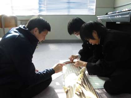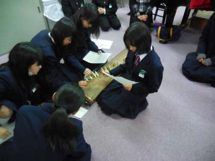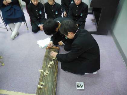 1年生は音楽の授業で、箏を練習しています。楽譜も独特です。