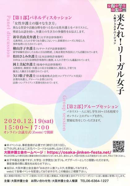 12/19開催「来たれ!リーガル女子」 12/10(木)申込締切