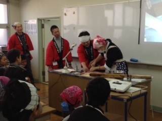 あなご職人さんの見事な包丁さばきに見とれながらも、男子生徒がひれ取りに挑戦!ぬめりがあるためなかなかうまく掴めません。悪戦苦闘の連続です。改めて職人さんが簡単にされていることに熟練した技術があることを実感していました。また、何人かの生徒は「櫛うち」に挑戦しました。