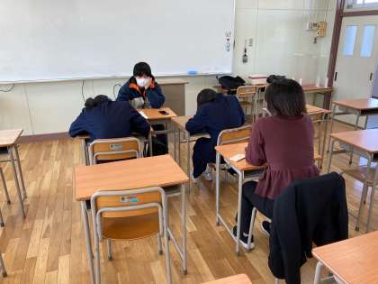 冬休み宿題を頑張る生徒に、サポーター2名が