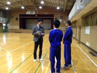 第4回くるくるダンスコンテストに入賞した2年1組と指導した岡崎先生に、菅公学生服株式会社発行の「カンコータイムズ」に写真と記事を載せるということで、取材がありました。