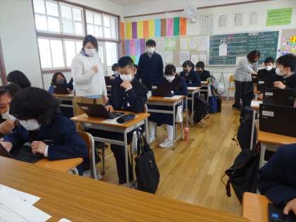 1年生の6時間目、キャリア教育で自分の適性や能力喉を調べ、将来どんな職業が向いているのか調べました。講師はスクール・カウンセラーの先生です。