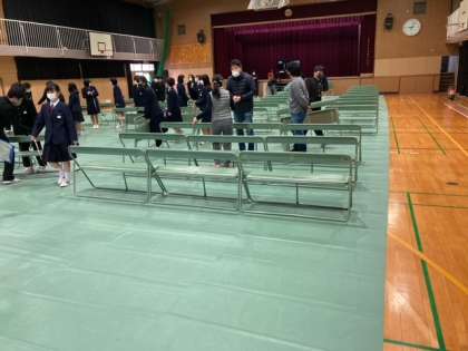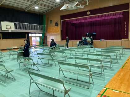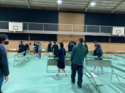 3年生自ら丁寧に、今日の1限に会場準備を行いました。