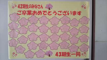 1・2年生から卒業する3年生の先輩へのメッセージです。お祝いや感謝の言葉が綴られています。