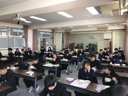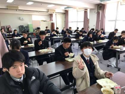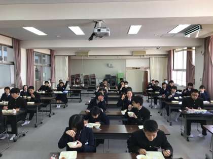 最後にみんなで一緒に食べるために、今日は広い多目的室で換気をして食べました。