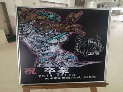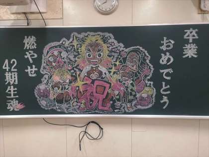 黒板アートは中川先生の作品です。