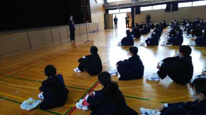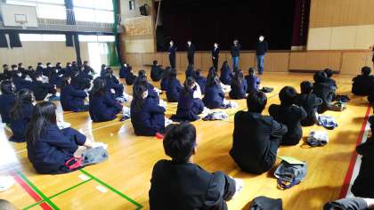 新年度が始まりました。先日入学したばかりの1年生は、まだまだ緊張している様子です。新転任の先生方の紹介と、学年所属の先生の紹介。校長先生のお話と、生徒指導主事の吉田先生のお話がありました。感染症の心配もありますが、気持ち新たに新年度頑張っていきましょう。
