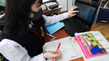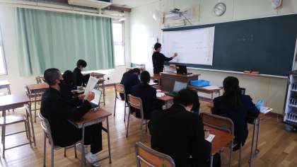 3年生の数学の授業の様子です。パソコンを使って解説を見たり、答え合わせをしながら、自分で勉強をすすめています。さらに今日は標準コースと基本コースに別れて、習熟度別に授業を展開しました。今年度も数学の勉強を頑張っていきましょう!