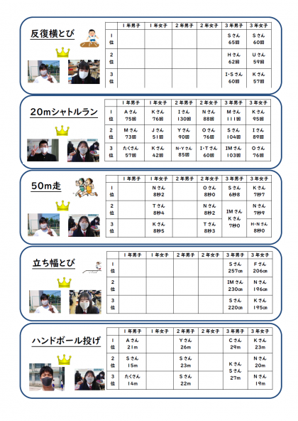 みんな頑張っています!しばらく体力テストもできなさそうなので、途中経過を報告させていただきます。