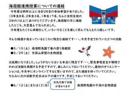 本校の海遊館部の活動が大阪府のHPに掲載されました。