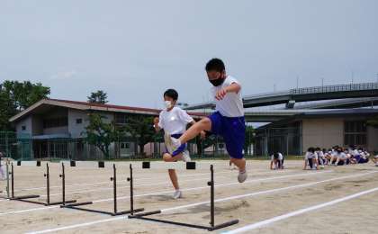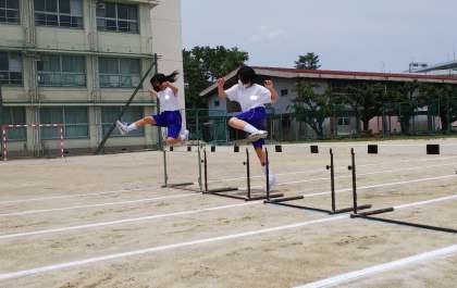 ハードル走の授業が始まりました。ダイナミックな動きがとても若々しいです。これからの上達が楽しみですね。