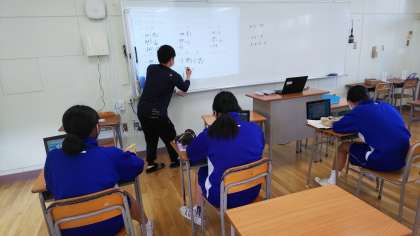 今日は単項式の乗法と除法の学習です。パソコンを使って自ら学習を進めるコースと、先生の解説を聞きながら進めるコースに分かれました。どちらのコースもとても頑張っていました。