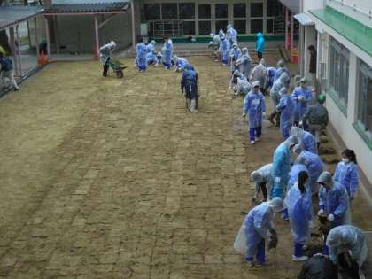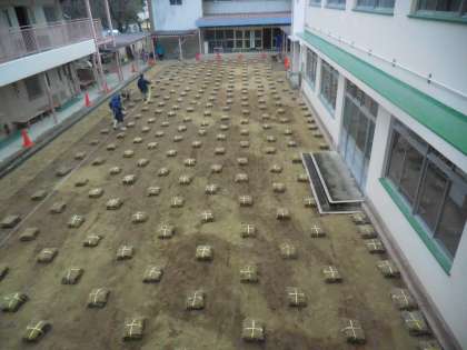 校庭等芝生化事業(その3) 中庭に芝を植えました