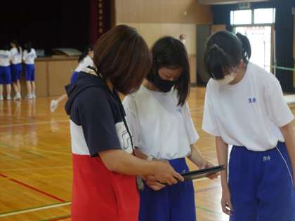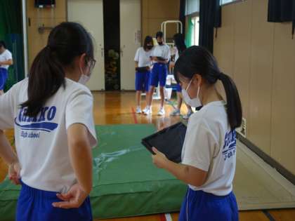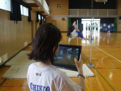陸上競技 高跳びです。クロームブックを使ってフォームの確認です。