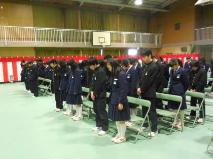 3月11日(水)は卒業式予行・式場準備でしたが、準備の途中2時46分に「黙祷」をしました。