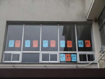 正門を入ると真正面の校舎のガラス窓に目標が掲示されました。