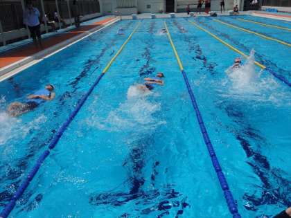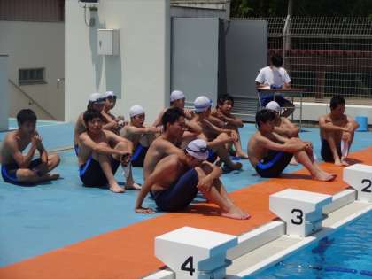 男子は得意な泳法で練習