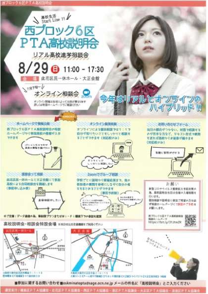詳細については、こちら⇒ 西ブロック6区 PTA高校説明会 をご覧ください。