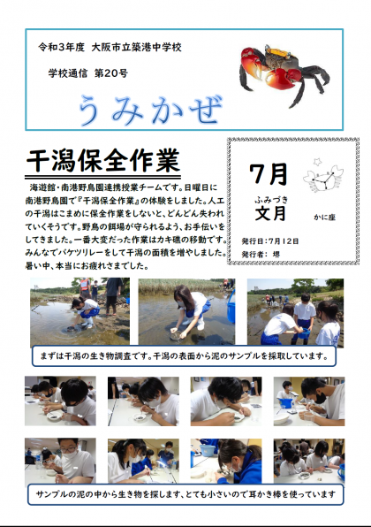 本校の海遊館部の活動が大阪府のHPに掲載されました。