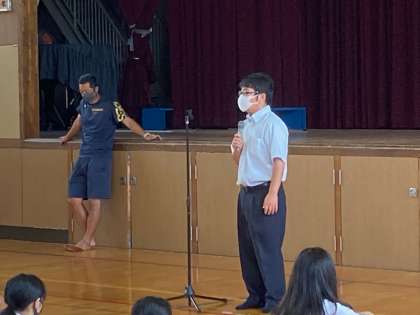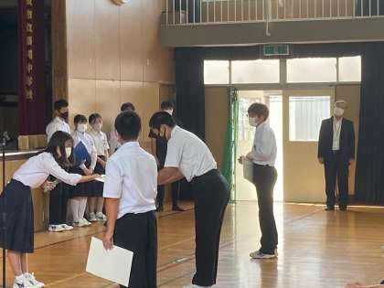 生徒会会長より、チャイム着席運動の表彰がありました。