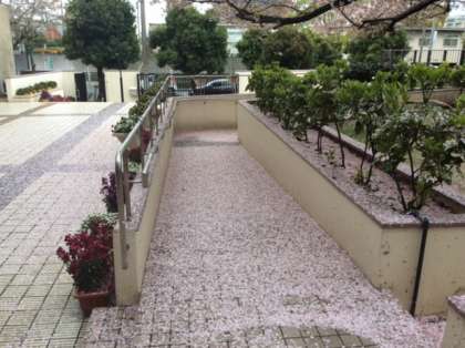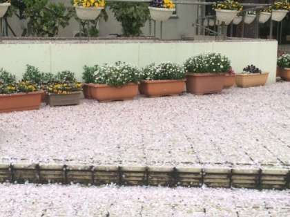 ピンクの花びらが雪のように降り積もりました。