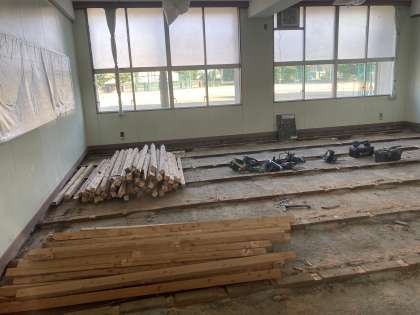 1階のE教室でも、床工事が始まりました。