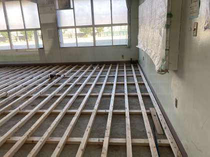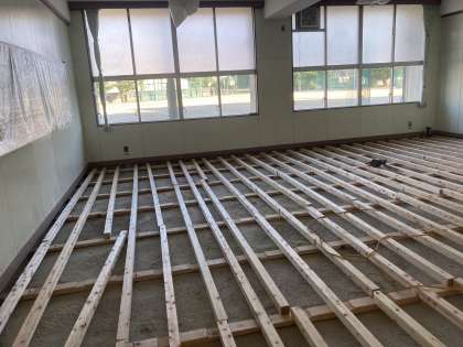 8月4日(水)の夕方の1階E教室です。順調に工事が進んでいました。