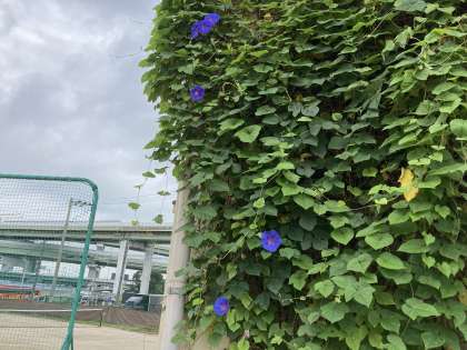 築港中学校では、格技室の壁面を利用して、壁面緑化をしています。