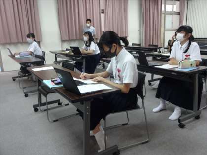 3年生の数学も3分割授業です。普通教室がないので多目的室で授業。
