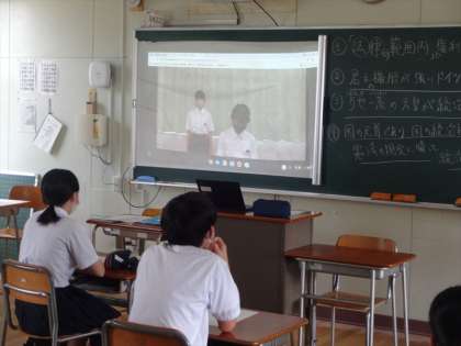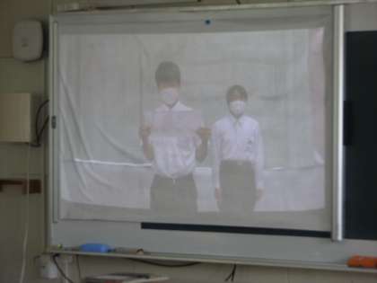 6限は後期生徒会役員戦況と立ち会い演説会。立候補演説と応援演説は教室のプロジェクタで写して行いました。