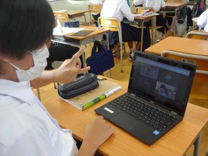 8時25分、予鈴が鳴り終わるやいなや朝学活が始まりました。リモートで参加する人もいます。