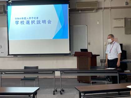当初、学校公開のあと、説明会を開催させていただく予定でした。緊急事態宣言中のため、生徒の授業をご覧いただくことはできませんでしたが、事前予約していただいたみなさんは、学校長の説明を熱心にお聞きいただきました。