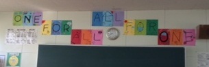 2組の学級目標は『One for all All for one』です。お互いを思い合える、まとまりのあるクラスを目指します。