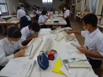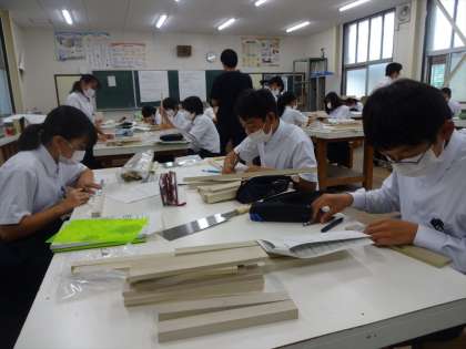 けがきの続きと切断。両刃のこぎりの説明と実際の切断についての話。