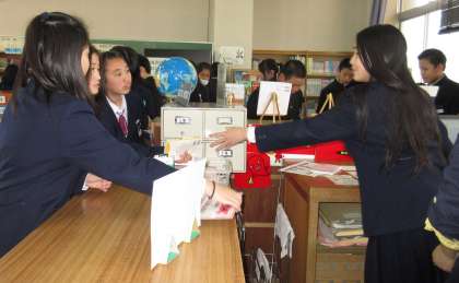 昼休みに地域のボランティアの方に図書室の貸し出しを手伝っていただいてます。