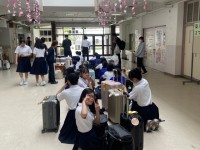 先週から、新しい生徒会のメッセージが、玄関2階のガラスに掲示されています。