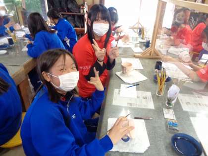 マグカップの絵付け体験をしました。